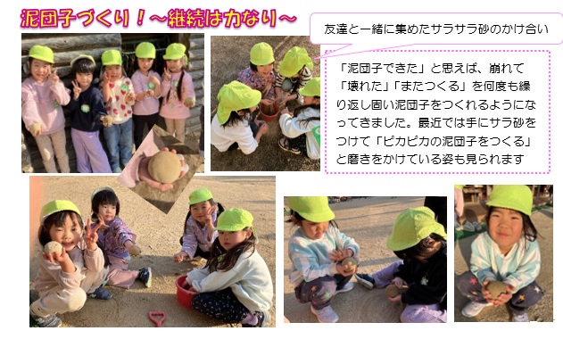 | こども広場 No.7(R6.9.18) 20歳になりました💖 猛暑の続く8月上旬にある学生さんが「20歳になりました」と園を訪れました。 その学生さんは、すぐ玄関に飾ってある「ちきゅうとなかよし」の共同製作に目を向け懐かしんでいました。 それは、平成22年度から地球環境保育の取り組みを5年間したことを思い出します。 この取り組みのきっかけは、京都議定書あるいはパリ協定にある世界全体で支え合い、思いやらなければ、この地球環境の問題は解決しないという指針がきっかけです。 毎週水曜日のゴミ収集日を、もったいない日「もっちゃんで-」 として、リサイクル、自然、食育、この3つの観点で地球環境保育を進め、子どもたちと一緒に保育を創りあげるのに主体的な言葉を大切にして楽しくしました。 その1年目として、卵の殻をリサイクルして作った「ちきゅうとなかよし」の共同製作が玄関に掲げてあり、あれから14年経過し20歳になった姿に感慨無量でした。❤ |