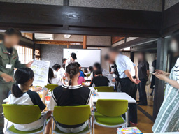 2日目には、ミーティングで中学生の質問に答え、私たちも初心に返りました。 3日目には、少し疲れも出たようですが最後まで猛暑の中初めての体験を頑張られました。 |