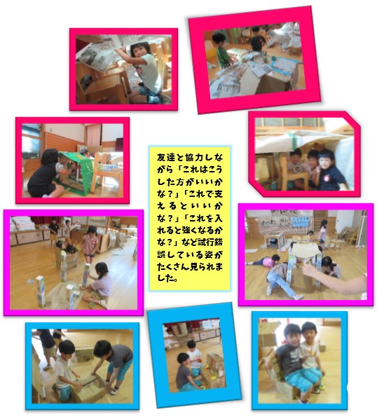 こども広場 No.23(R7.8.5) 7月の各クラスの様子を紹介します 【ひよこ1組(0歳児)】 ![]() 【ひよこ2組(1歳児)】 ![]() 【あひる組(1歳児)】 ![]() 【りす組(2歳児)】 ![]() 【うさぎ組(3歳児)】 ![]() 【こあら組(4歳児)】 ![]() ![]() 【ぱんだ組(5歳児)】 ![]() |