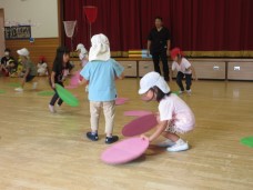 ![]() 愛育園の子どもたち合同で2チームに分かれ、玉入れ、オセロゲームをしました。両チームともにやる気満点のミニ運動会!最初はちょっと遠慮気味の小学生でしたが、時間が経つにつれて盛り上がっていました。 体を動かした後は、年長組が夏祭りで作った「おばけ屋敷」を体験!。舞台に作られた「おばけ屋敷」に小学生と一緒に入る園児たち。小学生にはちょっと物足りなかったかもしれませんが、愛育園ではこんなことをしているんだと知ってもらえるよい機会になったのではないかと思います。