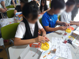 2日目には、ミーティングで中学生の質問に答え、私たちも初心に返りました。 3日目には、少し疲れも出たようですが最後まで猛暑の中初めての体験を頑張られました。 |